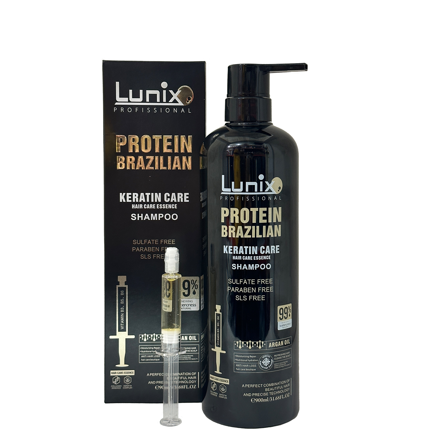 شامپو پروتئین لونیکس محصول کشور برزیل یک شامپو فری سولفات مناسب برای موهای تراپی شده است تا دوام عمر تراپی افزایش یابد. شامپو فری سولفات لونیکس به همراه یک سرنگ از ترکیب روغنی ویتامینهای B3,B5,B6 بوده که باید با مواد شامپو ترکیب کرده تا قدرت احیا شامپو فری سولفات بیشتر شود.